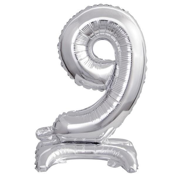 BALON FOLIOWY MINI CYFRA 9 NA STOJAKU SREBRNA