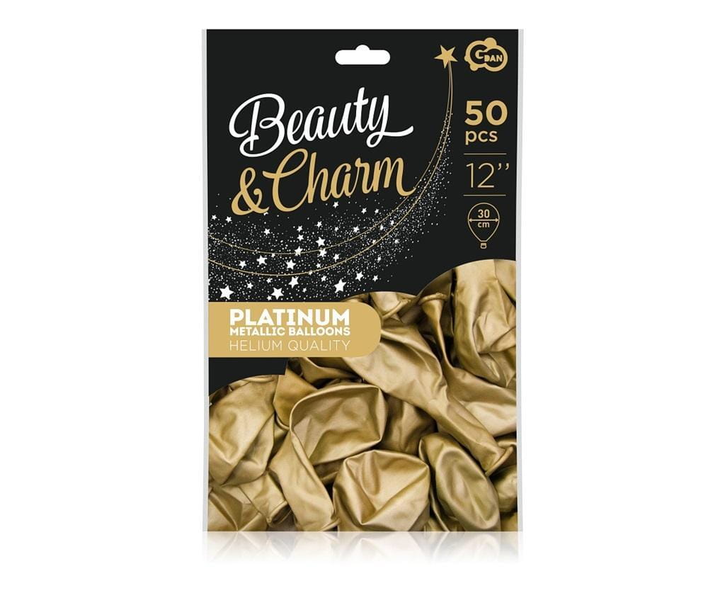 Balony chromowane Złote, B&C, 30 cm, 50 szt. Rozmiar w calach: 12 Rozmiar w centymetrach: ok. 30 cm Ilość sztuk w opakowaniu: 50 Kolor: złoty