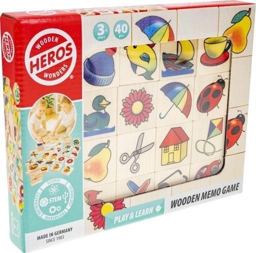 Drewniana obrazkowa gra pamięciowa wysokiej jakości rozwija umiejętności poznawcze i zachęca do zabawy. Drewno z certyfikatem FSC(R) 100%, wyprodukowano w Niemczech.