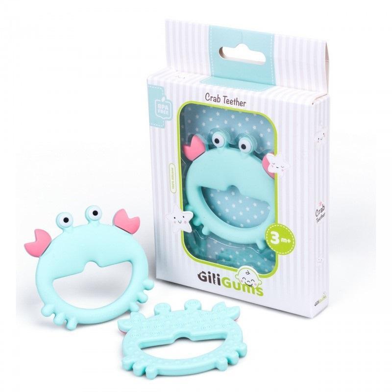 Wesoły krab rozweseli bobasa i przyniesie mu ulgę w ząbkowaniu! Wykonany w całości z bezpiecznego silikonu, posiada praktyczne wypustki, które masują dziąsła. Wygodny otwór ułatwia chwytanie zabawki.