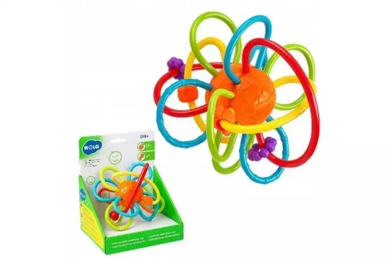 Grzechotka z funkcją gryzaka to lekka, kolorowa kula z silikonowymi ramionami i przesuwającymi się koralikami. Pierwsza zabawka w życiu niemowlęcia, która pomoże rozwijać zmysły oraz poznawać świat z uśmiechem na buzi. Bogata kolorystyka zachęca malucha do zabawy grzechotką. Jednocześnie gryzak masuje delikatne dziąsła i łagodzi ból podczas ząbkowania.