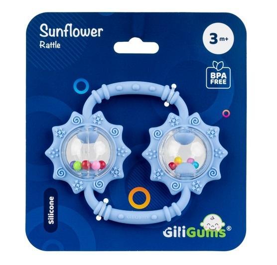 Podwójna grzechotka, zamknięta w uroczej formie dwóch połączonych ze sobą słonecznikow, zabawi malucha i ukoi obolałe dziąsła! Zabawka posiada dwie kule wypełnione kolorowymi koralikami, które przy potrząsaniu wesoło grzechoczą. Okalają je miękkie obręcze, tworzące kształt kwiatków, które dodatkowo zdobią wypustki o zróżnicowanych kształtach. Podczas gryzienia, wypustki będą delikatnie masować podrażnione ząbkowaniem dziąsła, przynosząc bobasowi ulgę. Dostosowany do małych rączek kształt zabawki, ułatwi jej chwytanie.