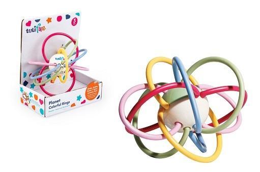 Piłeczka ozdobiona pierścieniami zachęca do nauki chwytania! Miękkie linki, które okalają zabawkę, ułatwiają dziecku trzymanie jej w rączkach. Obręcze są różnokolorowe, co umila korzystanie z zabawki i pomaga najmłodszym w rozwijaniu zdolności poznawczych. Produkt przeznaczony jest dla dzieci od 3 miesiąca życia. Cechy produktu: obręcze ułatwiające chwytanie zabawki; kolorowe pierścienie; wiek: 3m+.