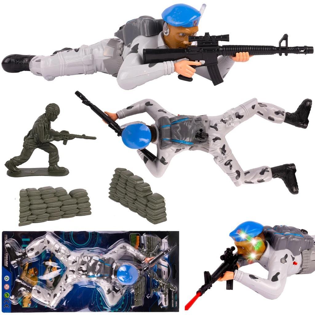 Żołnierz po włączeniu porusza nogami i czołga się po gładkiej powierzchni, następnie strzela z karabinu. Towarzyszą temu efekty świetlne oraz dźwiękowe - odgłosy strzałów.